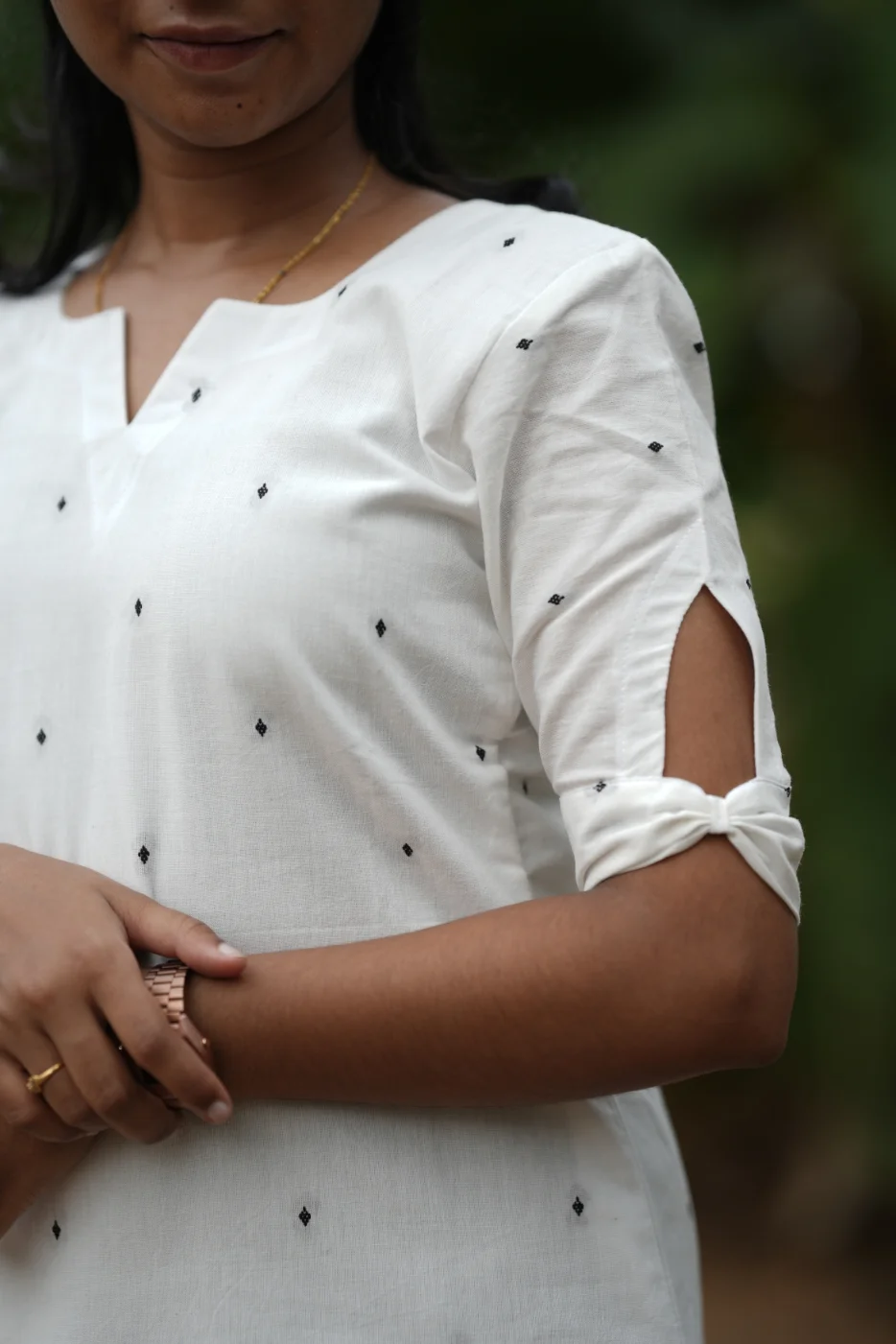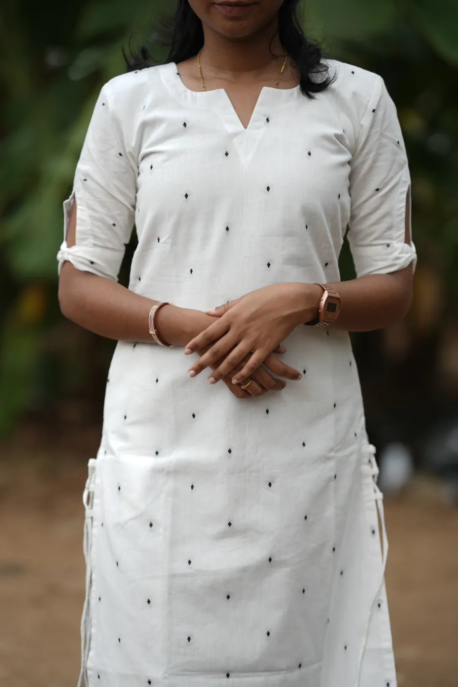 Exude effortless grace with the Annam set, a perfect blend of purity and style. The crisp white fabric is beautifully accented with delicate black geometric motifs, creating a timeless look that is both fresh and energetic. Crafted from premium-quality, breathable fabric, this outfit ensures a soft touch and a flattering fit for all-day wear. Whether it's a casual brunch, a workday, or a relaxed evening out, the Annam set combines modern aesthetics with unparalleled comfort.