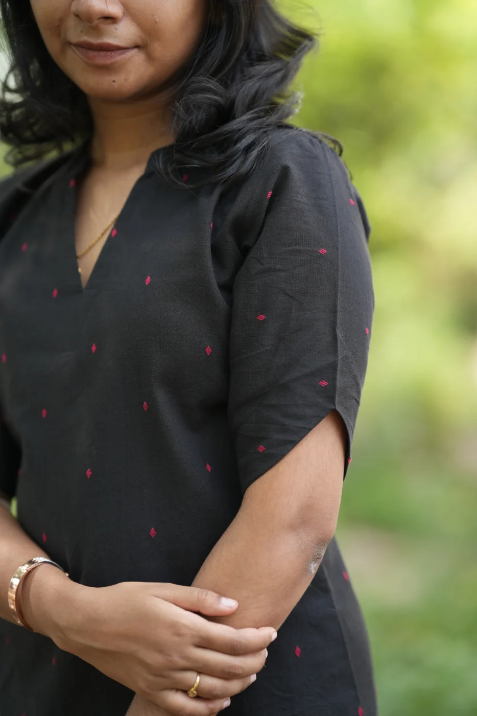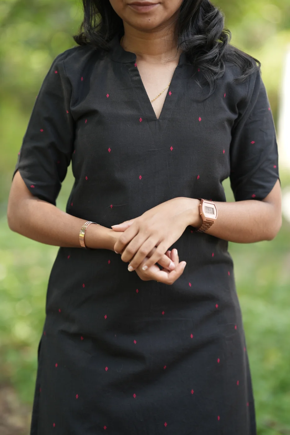 Flattering straight-cut silhouette with a contemporary V-neckline