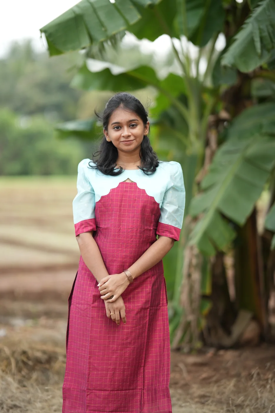 Features: Elegant tulip-cut sleeves and a matching contrast dupatta with gold stripe detailing