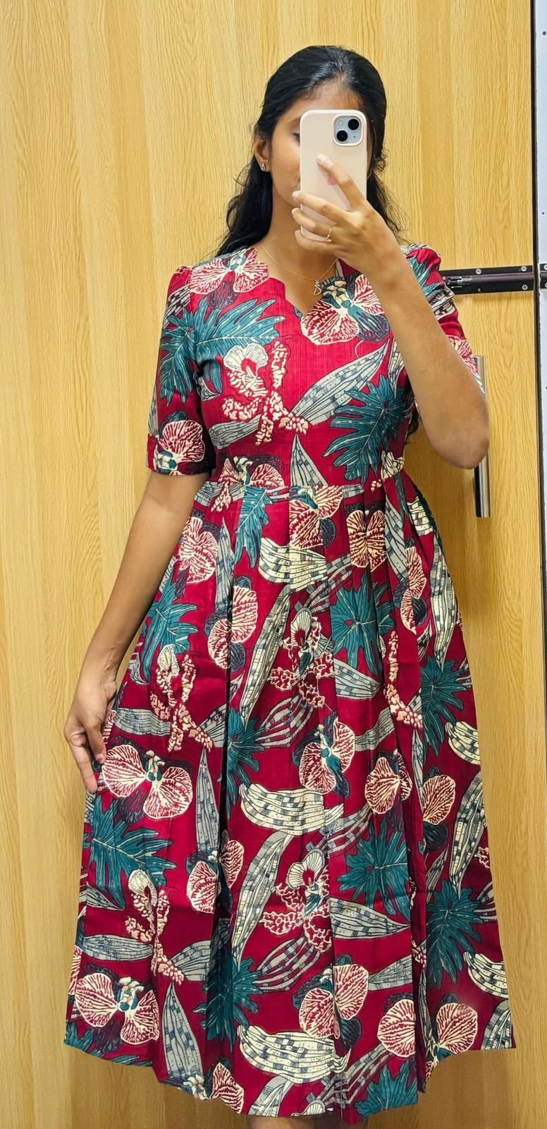 Crafted from soft and breathable fabric, this maxi offers a comfortable and lightweight feel, making it ideal for all-day wear. The fabric flows gracefully, giving a flattering silhouette while ensuring ease of movement. Its airy texture keeps you comfortable even during long hours, without compromising on style.