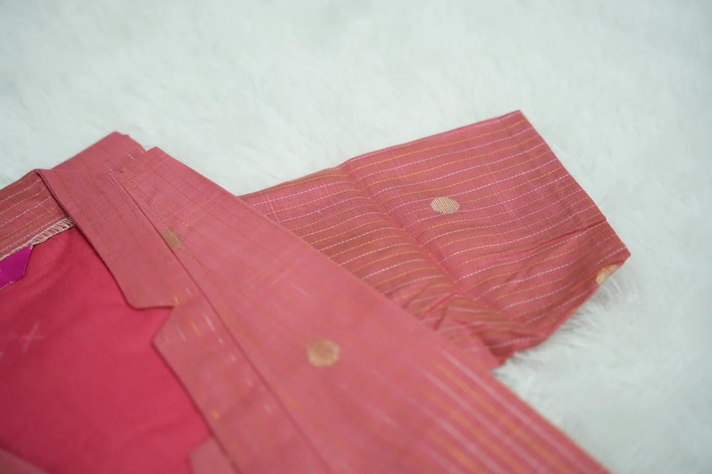 High-quality, breathable textured fabric with a premium finish and shimmering golden accents.