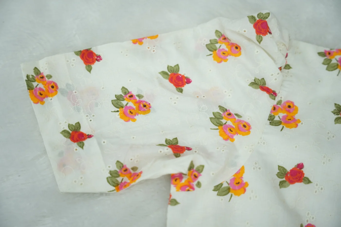 High-quality, breathable Hakoba textured fabric with premium eyelet embroidery and a soft finish.