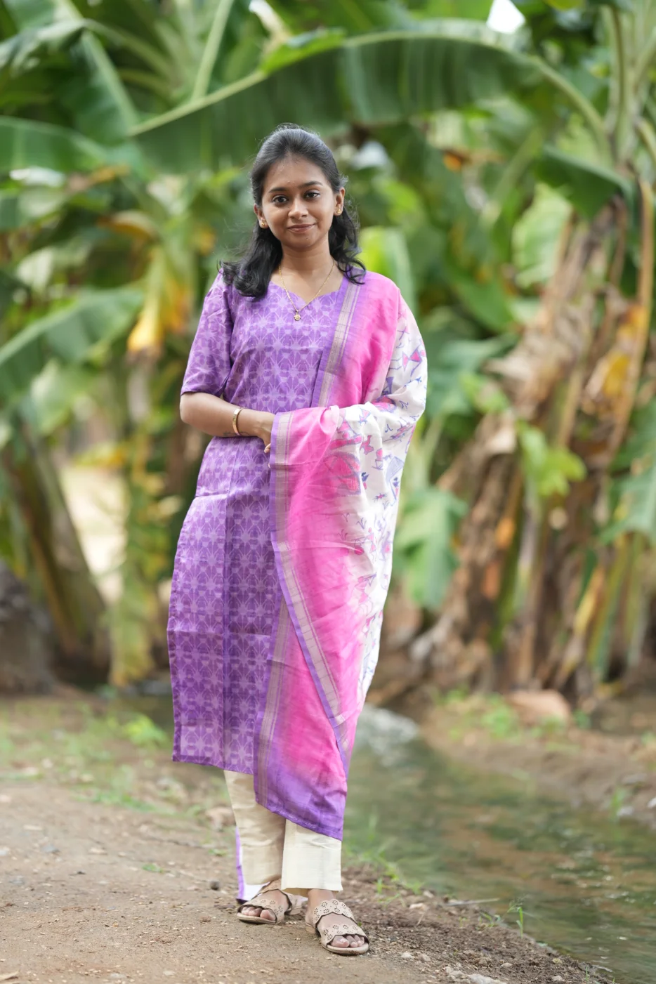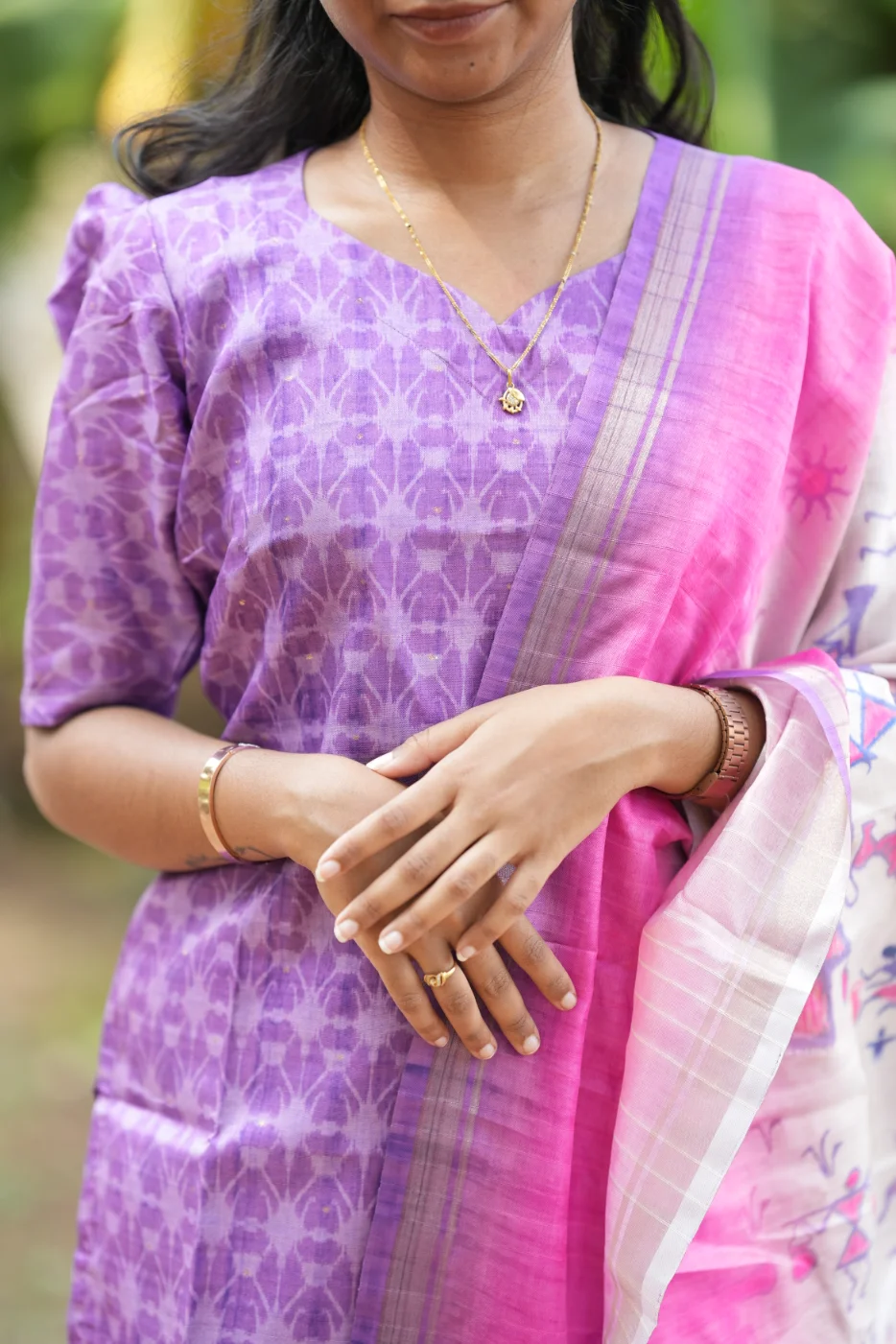 Exude refreshing charm with the Sanshika set, a perfect blend of modern design and classic elegance. The serene sea-foam blue fabric is beautifully accented with subtle golden horizontal stripes and an exquisite teardrop cutout neckline adorned with delicate white pearls. Crafted from premium-quality, textured fabric, this outfit ensures a soft touch and a breathable fit for all-day comfort. Ideal for daytime festivities, formal gatherings, or social events, the Sanshika set combines a polished aesthetic with effortless grace.