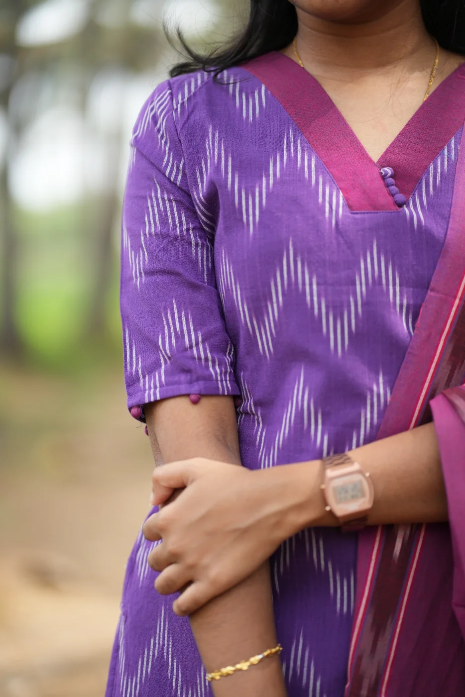 Ikkat Violet – 3-Piece Cotton Suit Set