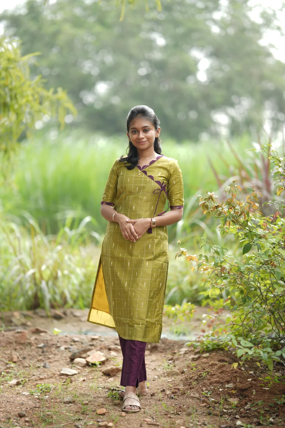 Design: Half Panel Style with Checks & Subtle Motifs