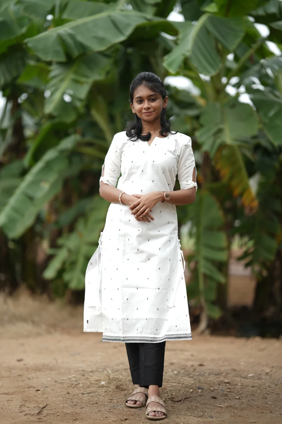 Exude effortless grace with the Annam set, a perfect blend of purity and style. The crisp white fabric is beautifully accented with delicate black geometric motifs, creating a timeless look that is both fresh and energetic. Crafted from premium-quality, breathable fabric, this outfit ensures a soft touch and a flattering fit for all-day wear. Whether it's a casual brunch, a workday, or a relaxed evening out, the Annam set combines modern aesthetics with unparalleled comfort.