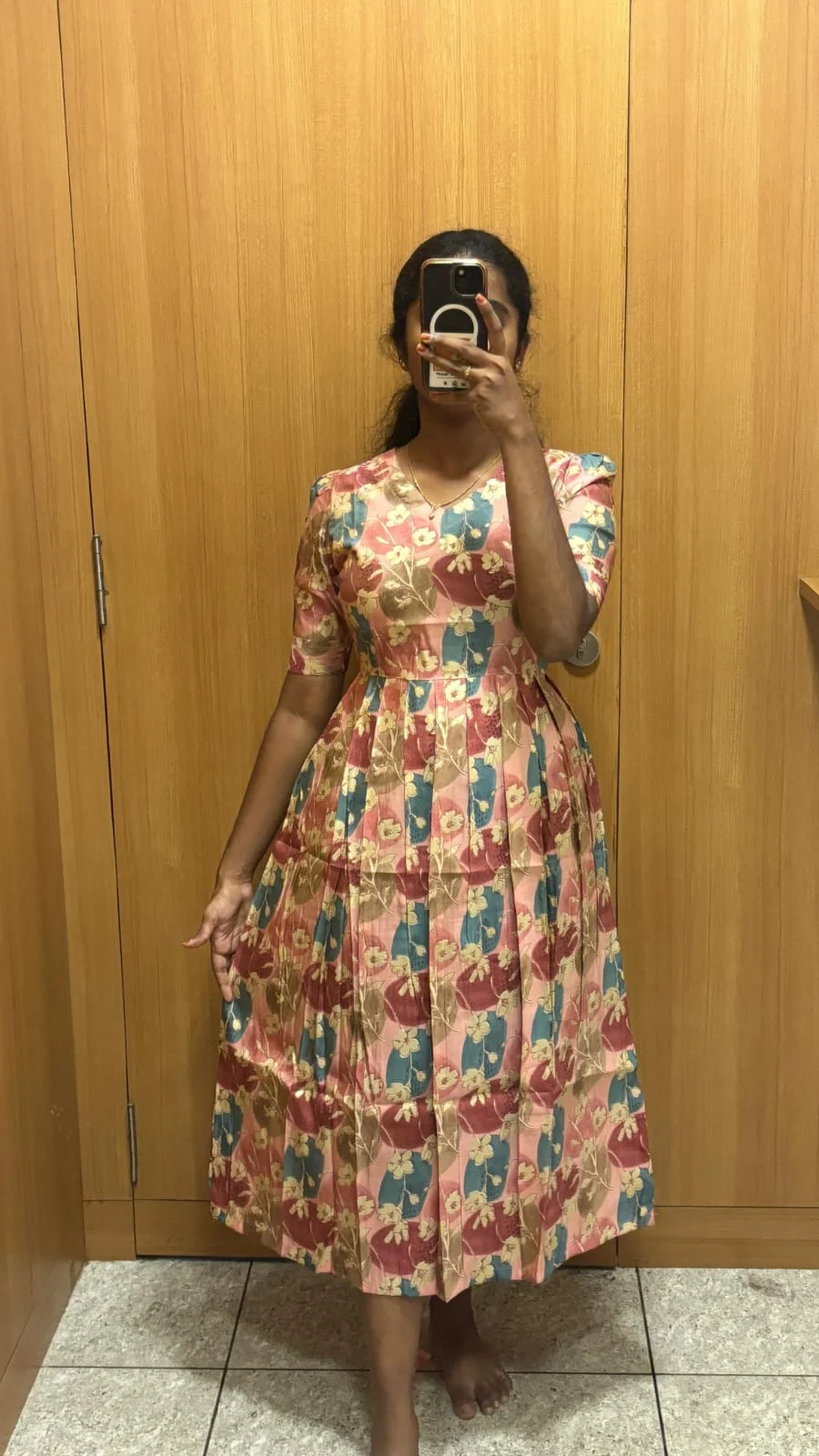 Perfect for casual outings, office wear, or daily use, this dress combines earthy tones with floral elegance, making it a versatile addition to your collection.