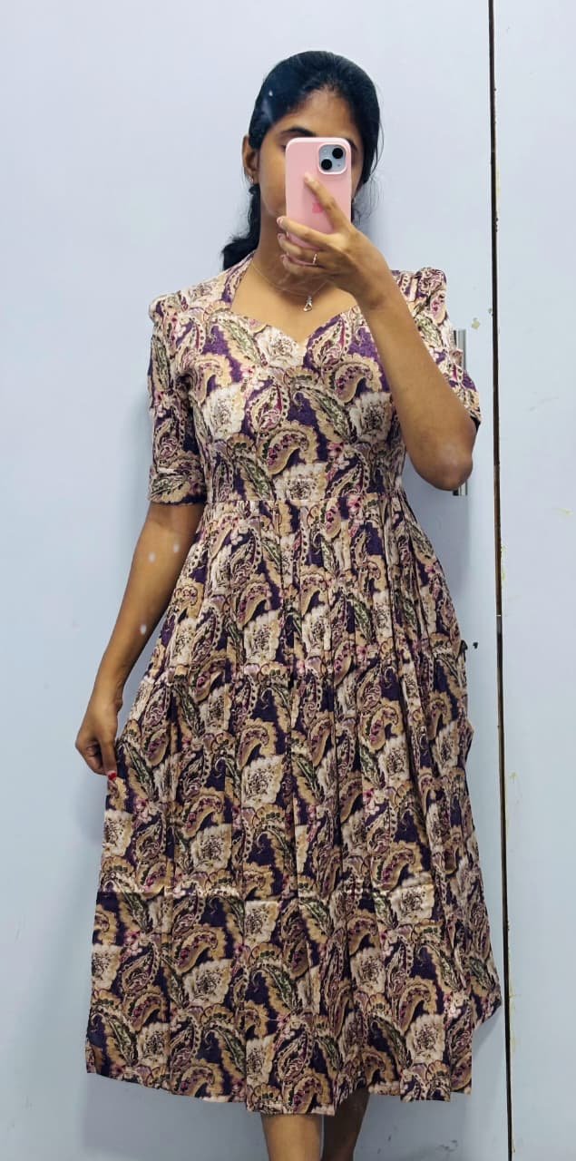 Perfect for casual outings, office wear, or daily use, this maxi blends soft pastel tones with floral elegance, making it a versatile and must-have addition to your wardrobe.