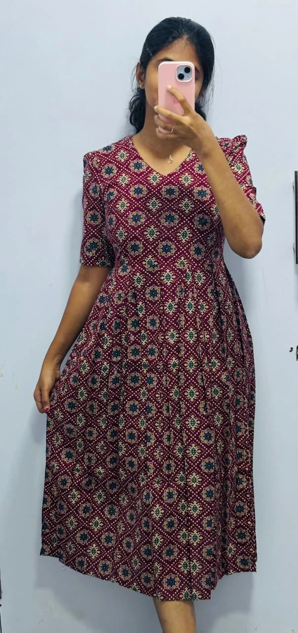 Crafted from soft and breathable rayon fabric, it offers a smooth and lightweight feel, ensuring all-day comfort. Designed without lining, the dress remains airy and easy to wear, making it perfect for warm weather. The fabric drapes effortlessly, enhancing the natural flow and giving a flattering silhouette.