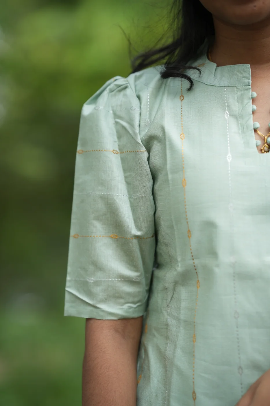 Embrace a look of serene sophistication with the Pistachio set, a beautiful blend of soft, refreshing tones and understated elegance. The gentle light green body features a subtle, shimmering texture that catches the light beautifully, creating a polished and graceful appearance. Complemented by a flowing cream dupatta adorned with oversized peach and green floral prints, this ensemble is designed for the modern woman who values both comfort and timeless style. Ideal for daytime festivities, garden parties, or elegant social gatherings, the Pistachio set offers a breezy, breathable fit that keeps you feeling as fresh as you look.