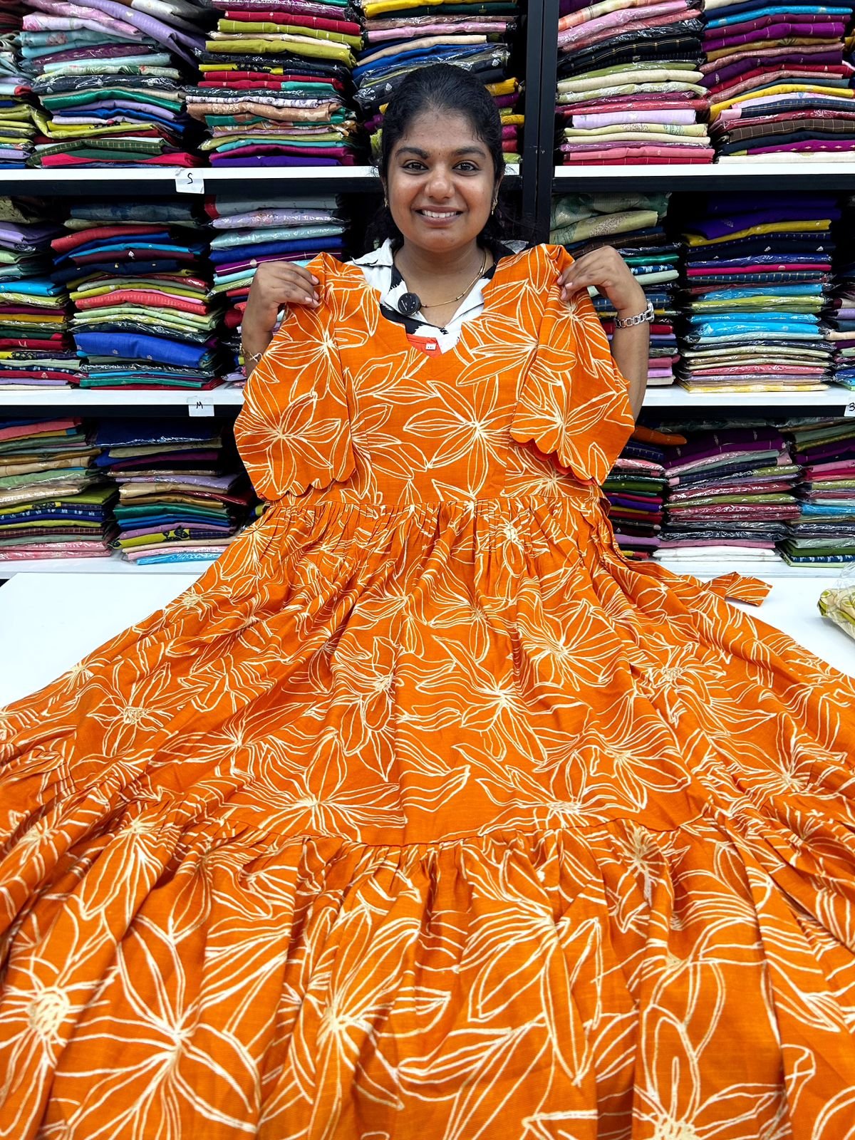 Crafted from soft and breathable fabric, the Blue Meena Maxi offers a comfortable fit with a flattering flare, making it ideal for all-day wear. Its elegant silhouette combined with detailed patterns makes it perfect for casual outings, small gatherings, or festive day wear.