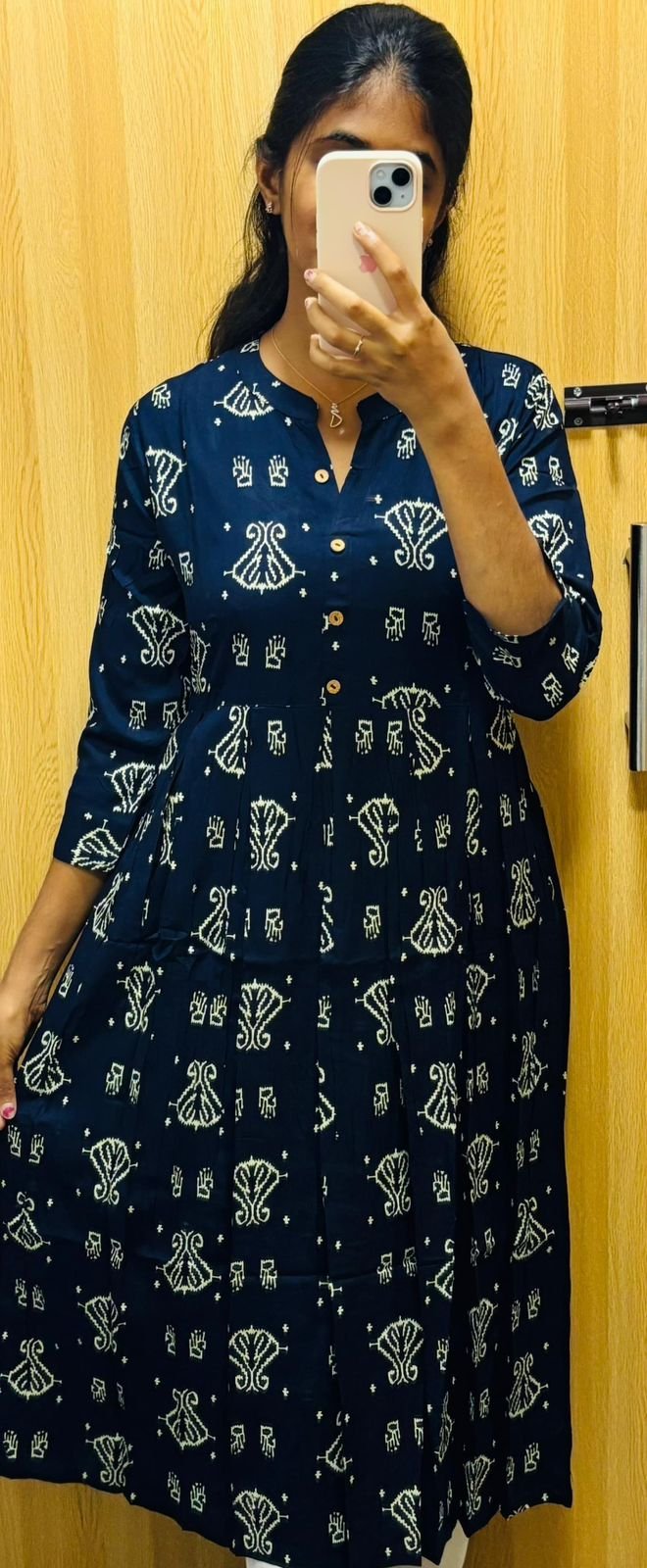 Perfect for casual outings, office wear, small gatherings, or daily wear, this maxi combines the richness of navy with subtle golden detailing, making it a versatile and timeless addition to your wardrobe.